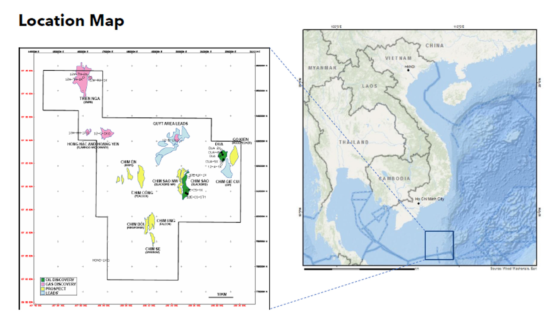 Block 12W is made up of three producing oil and gas fields; Chim Sáo, Chim Sáo North West (CSNW’) and Dua, located in the Nam Con Son Basin, approximately 400 km south west of Vung Tau, Vietnam.